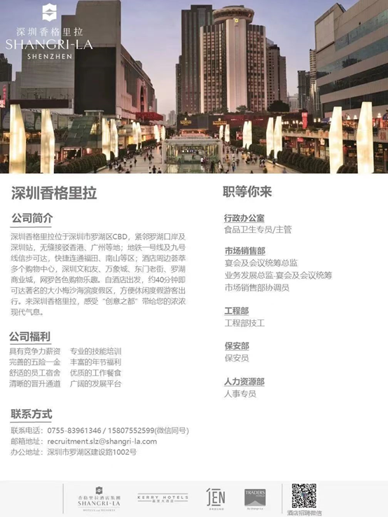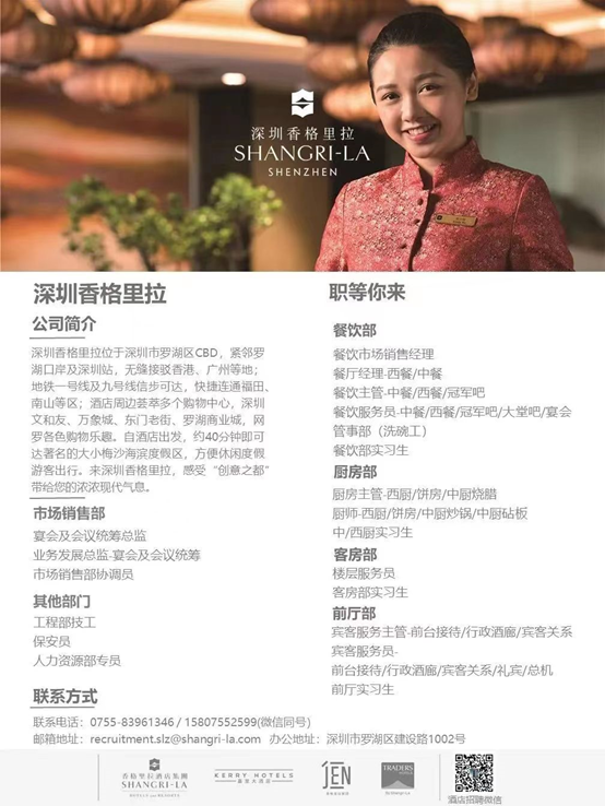 【就业招聘信息】深圳香格里拉大酒店有限公司-前厅部、人力资源部、市场营销部