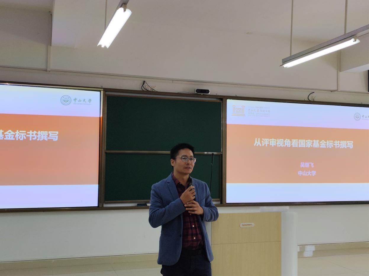 图 吴继飞副教授作“从评审视角看国家基金标书撰写”专题讲座