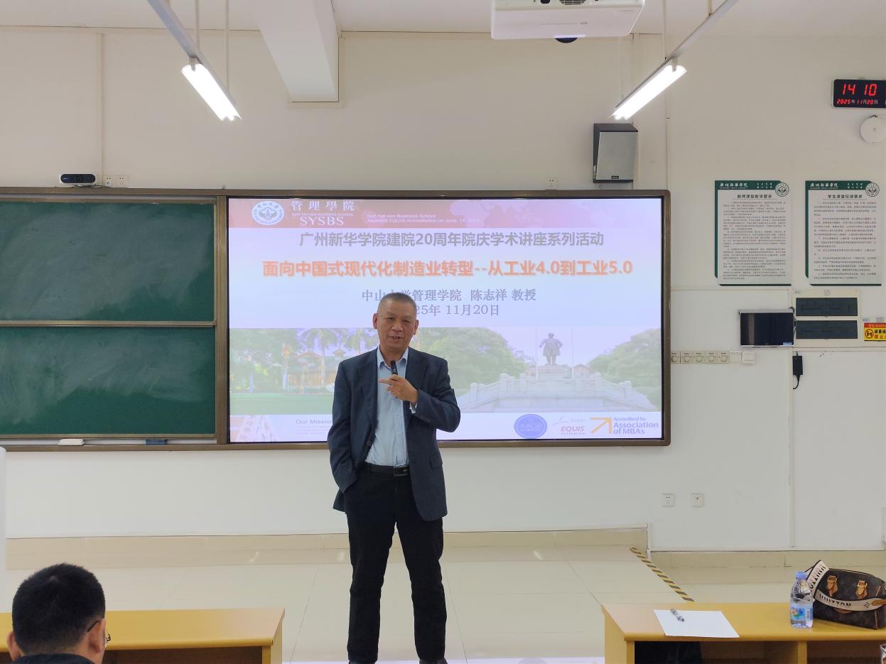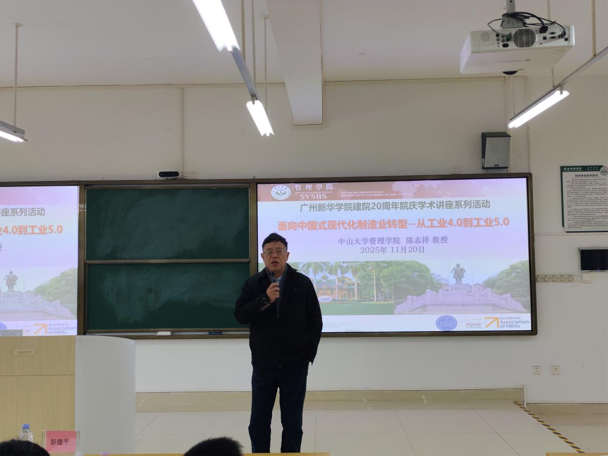 为了庆祝广州新华学院建校二十周年,让学生更加了解中国式现代化制造业转型,11月20日下午,管理学院邀请中山大学管理学院、广州新华学院管理学院学科带头人陈志祥教授到校开展题为“面向中国式现代化的制造业转型——从工业4.0到工业5.0”的主题讲座。该讲座由管理学院院长彭建平教授主持,管理学院师生代表参加讲座。