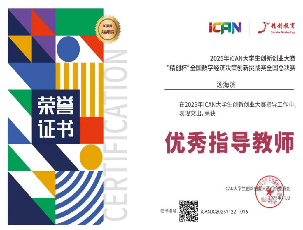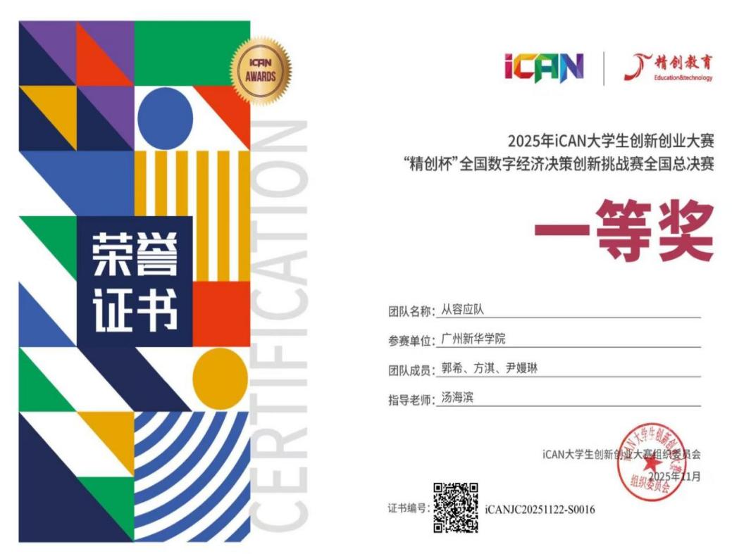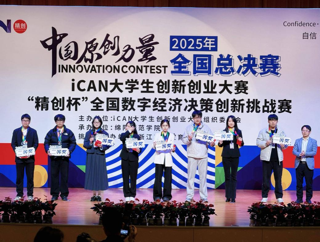11月22-23日,2025年iCAN大学生创新创业大赛“精创战赛全国总决赛在四川绵阳师范学院落下帷幕,我院金融科技专业学生在全国总决赛比赛中,勇创佳绩,获得国赛一等奖1项,三等奖1项好成绩。