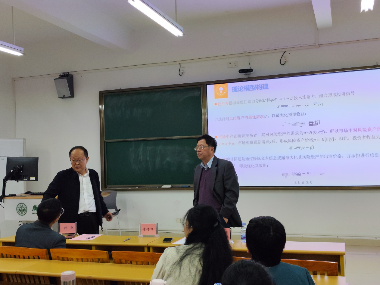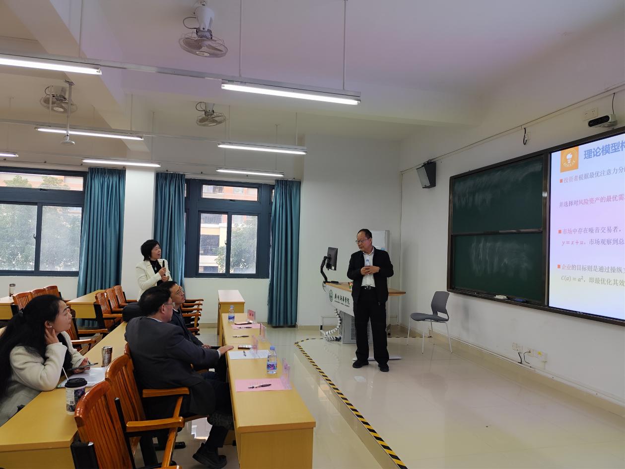 在交流环节,学院教师结合各自研究方向,就风险资产最大化预期收益公式、区域金融科技发展水平差异的研究意义等问题,与李教授展开了深入探讨。